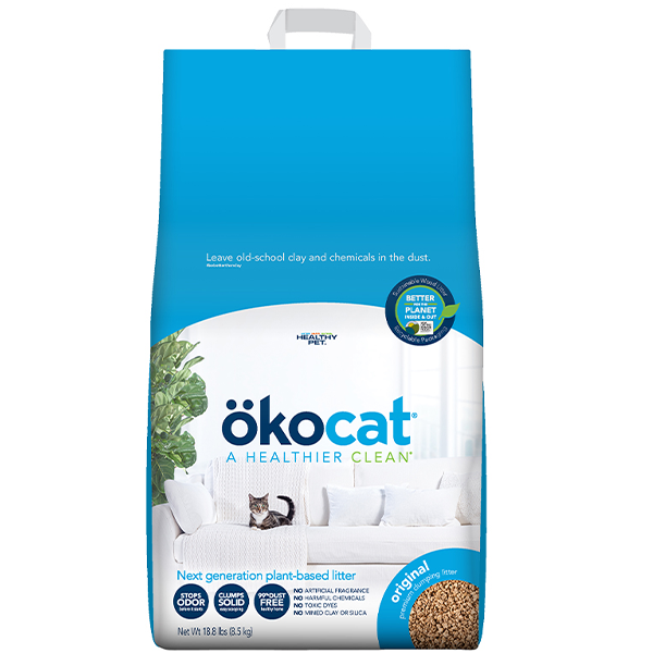 Okocat Original Premium Clumping Wood Cat Litter is relentless at controlling odor, while offering a pleasant, playful texture that's easy on paws and has a fresh natural scent reminiscent of the great outdoors. Make the choice to switch to a superior natural litter that's cleaner and healthier for your cat, family and home. Made from sustainably sourced, responsibly rescued natural wood fiber, okocat offers the brilliance of European engineering for a better performing litter.