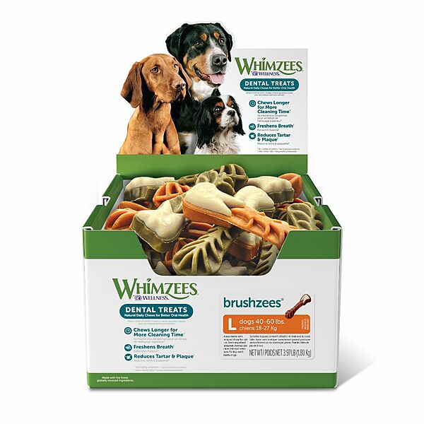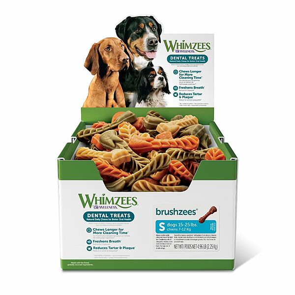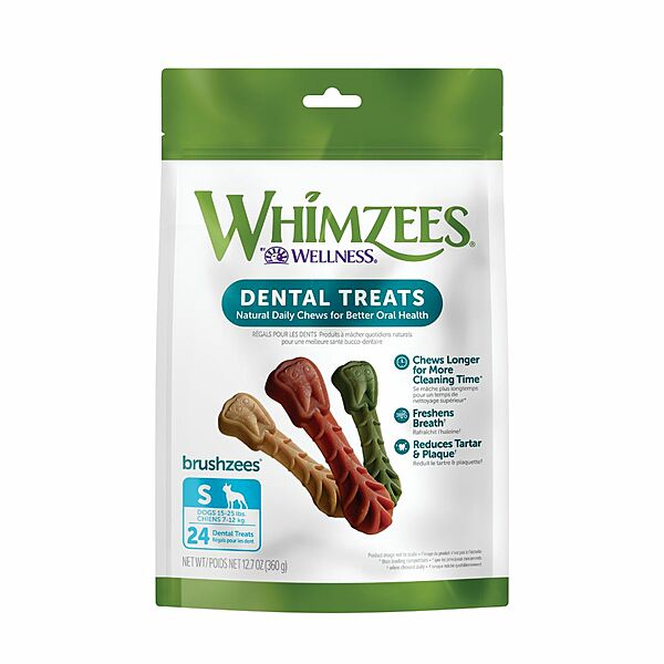 These Paragon Whimzees Brushzees are not just cute by design; they also have a practical application. As your dog chews, the rough surface and grooves on the treat work to remove plaque and tartar buildup on your dog's teeth. The neck and bottom of the treat now have more ridges compared to the previous toothbrush design to allow proper blood flow through your dog's gums and more comfortable for your dog to grip and hold while chewing on it.